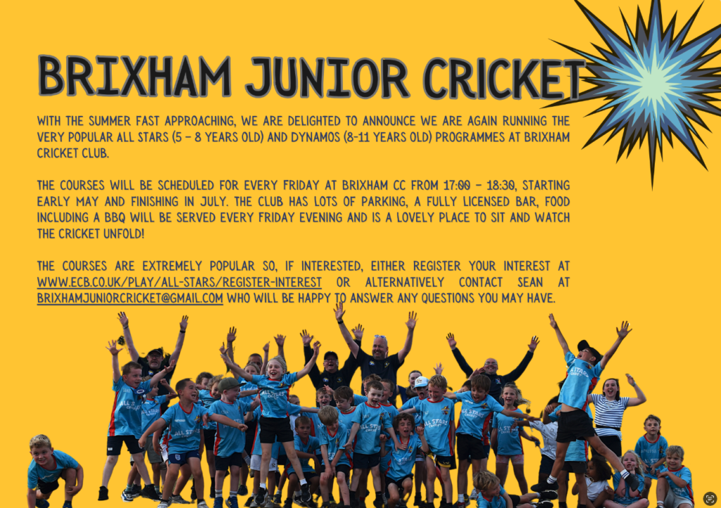 The registration for All Stars and Dynamos has now gone live and you are able to book. Both start on the 1st May and finish mid July. Links to sign up are below, any questions please message Sean on brixhamjuniorcricket@gmail.com.